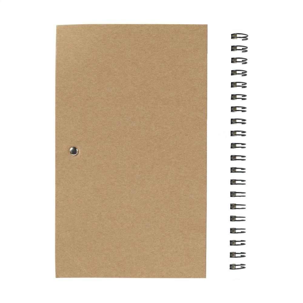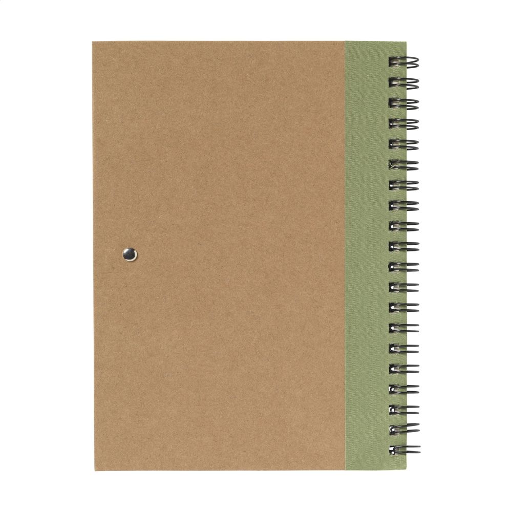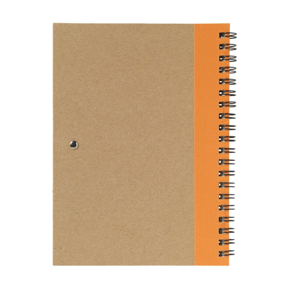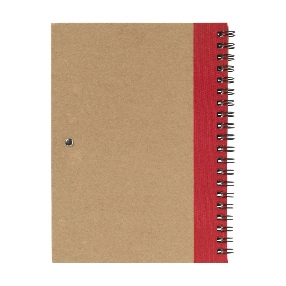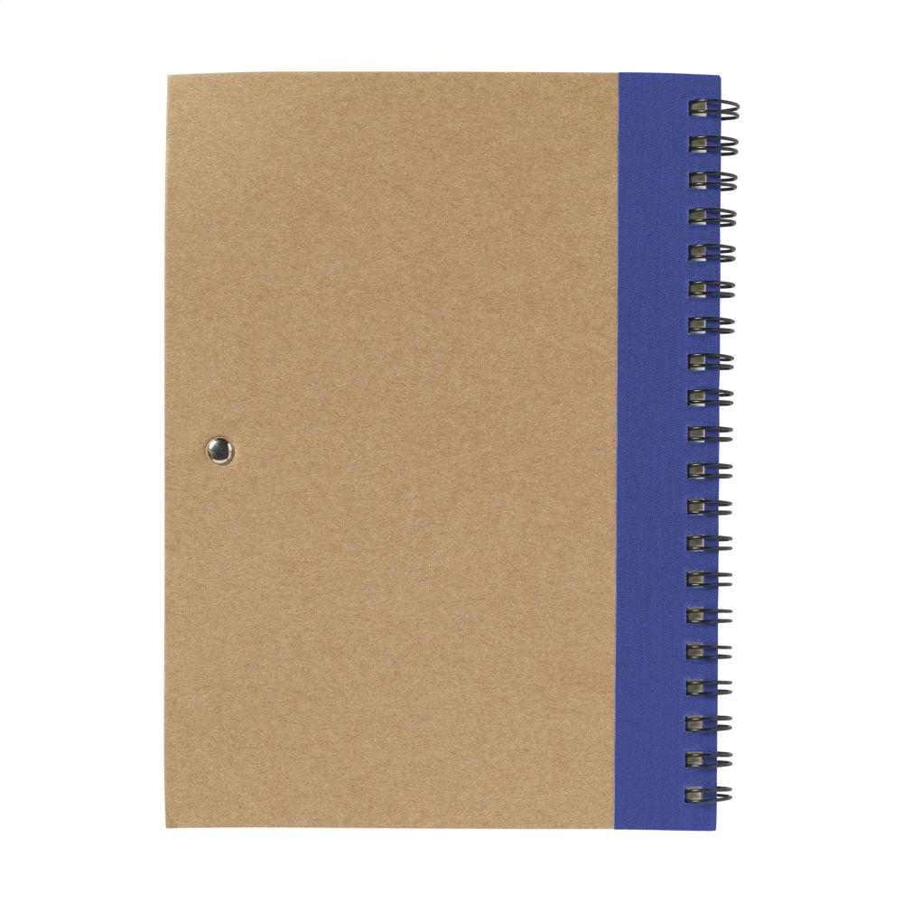 Notebook made from recycled material with approx. 70 sheets/140 pages of cream, lined paper (70 g/m²) and cardboard cover. Bound with a strong metal wire-o-binding. Incl. blue ink ballpoint.