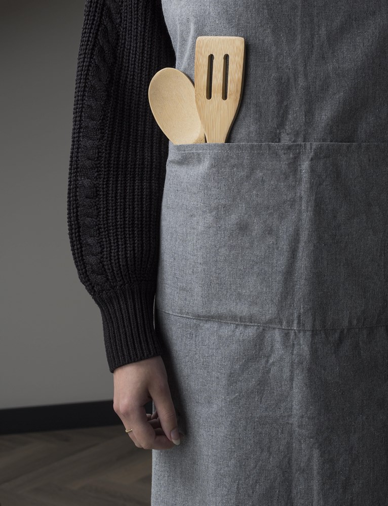 The practical design includes a generous front pocket, essential for keeping your tools, order pads, or cleaning cloths close at hand. Forget fiddly fasteners; the adjustable neck strap apron features elegant brown PU-leather straps, offering a sophisticated aesthetic that rivals any high-quality bistro apron. This environmentally conscious design ensures your staff uniform suppliers Europe search ends here. Furthermore, we specialize in promotional textile branding; just like we customize corporate T-shirts or personalize promotional towels, this recycled fabric apron is the ideal canvas for your custom branded workwear. Our promotional merchandise Europe solutions make it simple to integrate your corporate identity-whether you need simple logo placement or full work apron with logo print services. Choose this grey apron for personalized uniform solutions that are modern, practical, and sustainably sourced.
