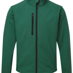 The jacket is made from 92% polyester and 8% elastane. It features a three-layer softshell construction. The jacket includes a breathable membrane. A microfleece lining adds comfort. It is waterproof up to 5,000mm. The softshell jacket is also windproof. It has two lined side pockets. One lined chest pocket is also present. All pockets have a zipper closure. Each zipper includes a puller. The jacket has a full front zip. An internal storm flap is included. A zip protector is at the collar. The bottom hem has an elastic drawcord. Cuffs are adjustable for a custom fit. The back hem is longer. You can wash this jacket at 40°C. Avoid using fabric softener. Tumble dry on a low temperature setting. This jacket is available in various sizes: XS, S, M, L, XL, XXL, 3XL, 4XL. Available colors include Black, Bottle Green, Classic Red, French Navy, Azur Blue, and Titanium.