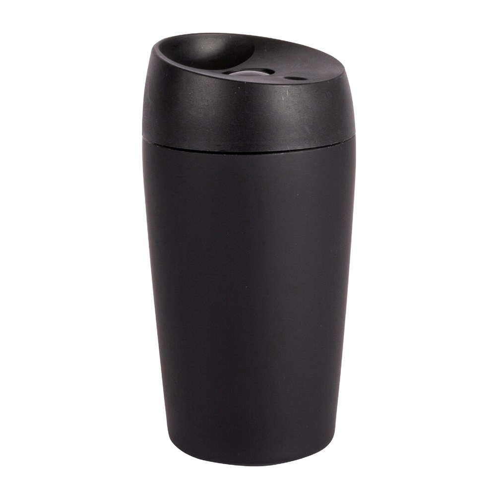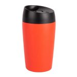 This Sagaform Loke mug features a double-walled construction. This design helps keep beverages warm. It has a soft rubber coating for comfortable handling. The mug offers a 240ml capacity. It is designed to fit under most coffee machines. A smart locking function ensures a leak-proof seal. The Loke mug is available in Black and Red.