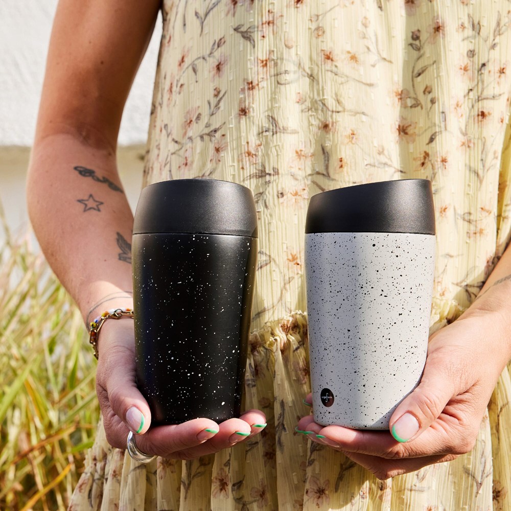 The Sagaform Loke Double Wall Mug Splash 240ml is a versatile drinkware item. You can use this mug as a sustainable alternative to disposable cups. It is available in white and black, featuring a playful speckled design. This mug has a capacity of 240ml.