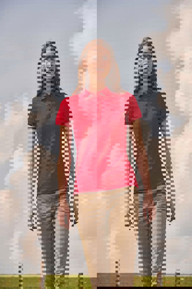 65% polyester / 35% katoen. Piqué. Kraag en mouwuiteinden in 1×1 rib. Zijsplitjes. Knooplijst met 2 toon op toon knopen. Nektape. Wasbaar op 60°C.