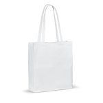 This is a customisable cotton shoulder bag. It is made from 140g/m² cotton material. The bag holds an OEKO-TEX certification. It features a side gusset for increased capacity.