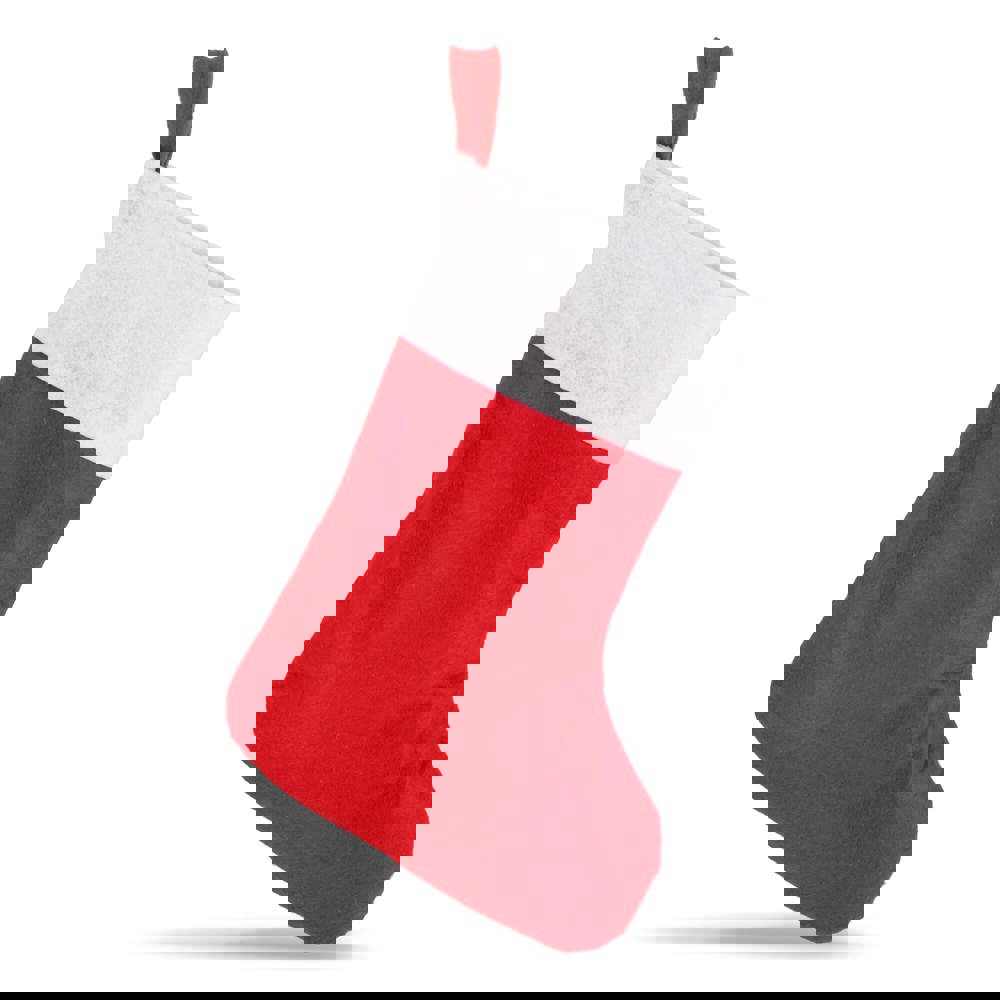This Christmas stocking is made from soft felt material. It has a pleasant texture. The stocking measures 40 cm in length. It is available in classic red and green colors. You can easily hang it up in any space. The design is festive and appealing. It adds a seasonal touch to any business environment or event.