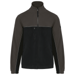 100% polyester. Gemaakt van 100% gerecycleerd polyester. Anti-pluis microfleece. Rechte snit. 2 ritszakken opzij + 1 borstzakje met rits Gerecycleerde toon-op-toon plastic ritsen met ritstrekker. Contrasterende nektape met visgraatmotief. Contrasterende bies tussen de tweekleurige delen van het kledingstuk (lichaam, voorkant mouwen en rug). Elastische penhouder met 3 vakken op de linkermouw. Ophanglint in de kraag. Elastische mouwuiteinden en boord. Tear-away merklabel.