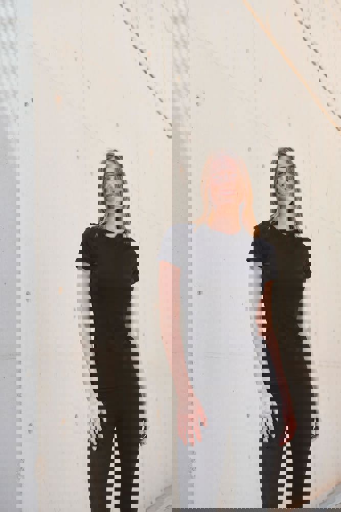 96% katoen / 4% elasthan. Enzym wash voor een zacht aanvoelen. Zijnaden. Moderne lange pasvorm. Ronde hals in rib met nektape.