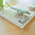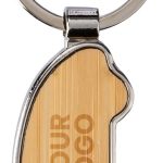 Sleutelhanger bedrukken zinklegering duurzaam bamboe huis detail.