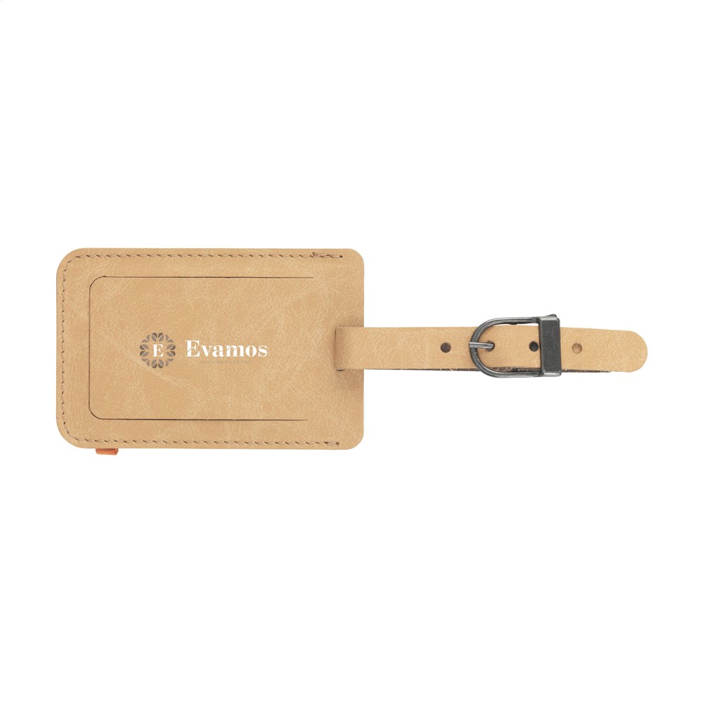 Bagagelabel gerecycled leer met stevige metalen gesp