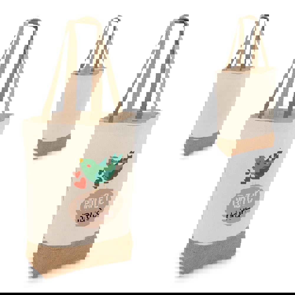 Jute draagtas bedrukken OEKO-TEX met katoenen voorvak