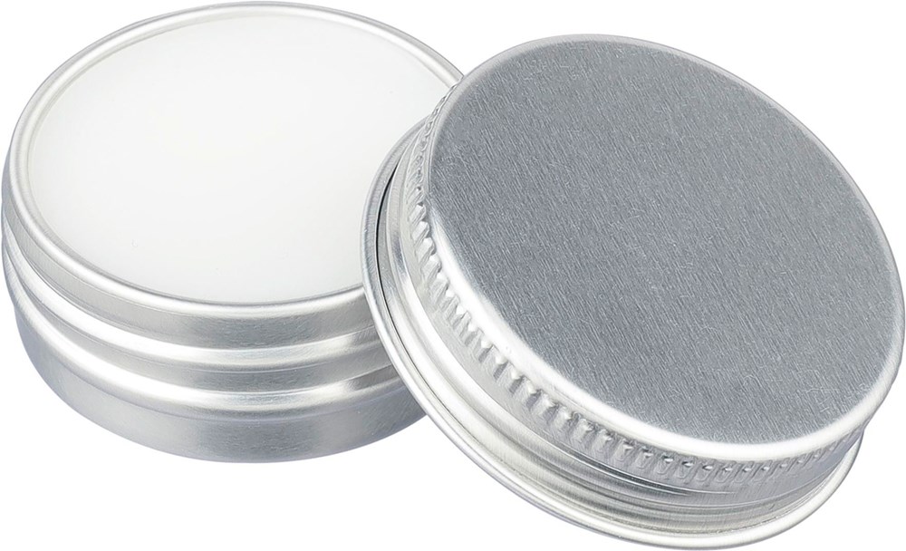 Lippenbalsem bedrukken metalen blik SPF 10 zilver 12 gram