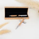 Cork Pen Set Bedrukken Stijlvol Kurk Metaal Blauw in Cassette