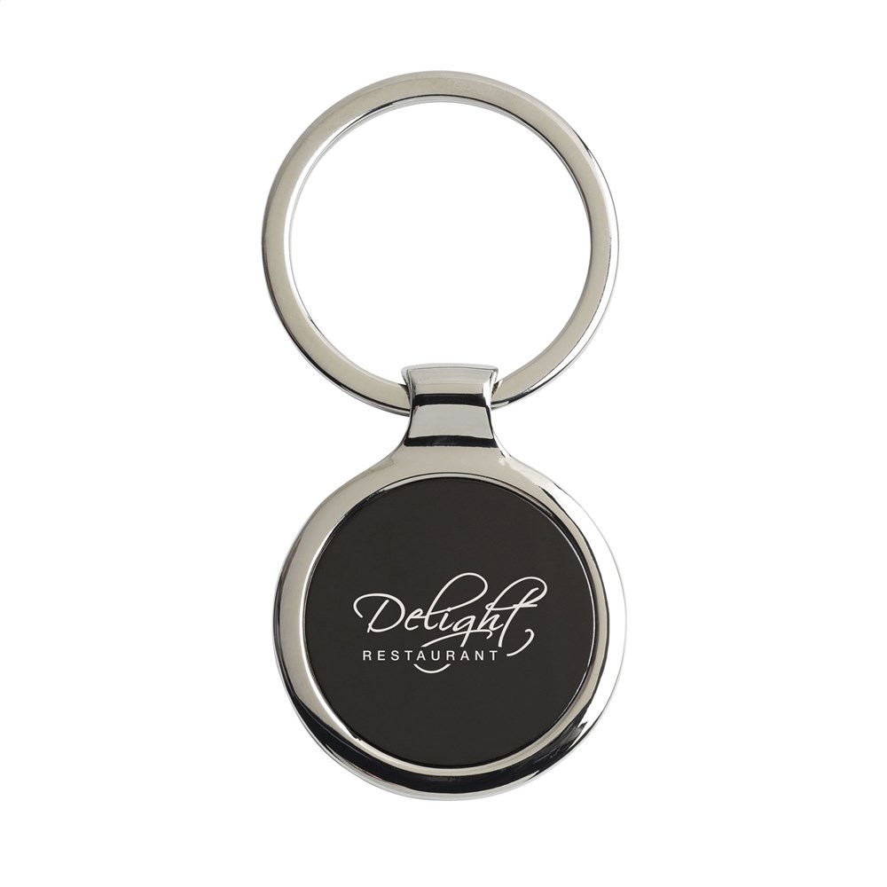 Metalen sleutelhanger bedrukken KeyTag Circle, robuuste zwarte inlay