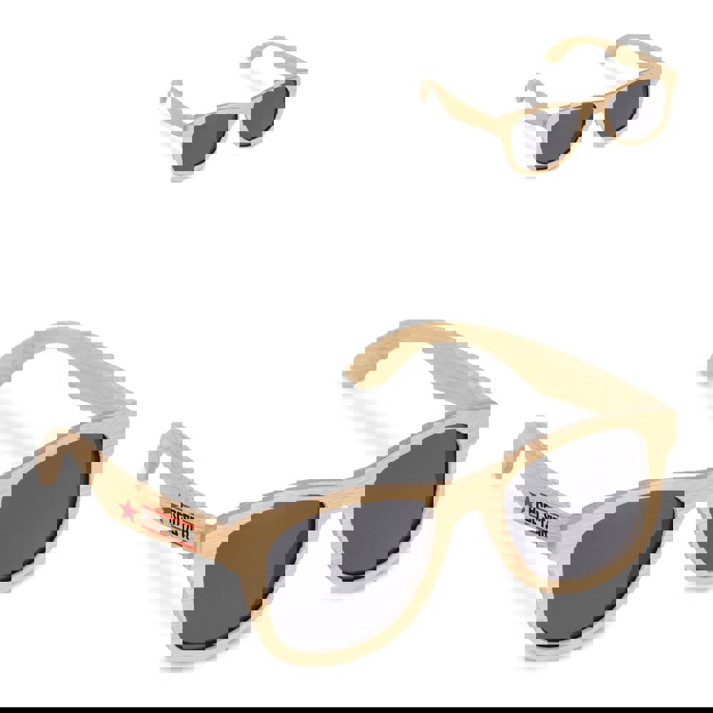 Bamboe zonnebril bedrukken Justin UV400 natuurlijk montuur