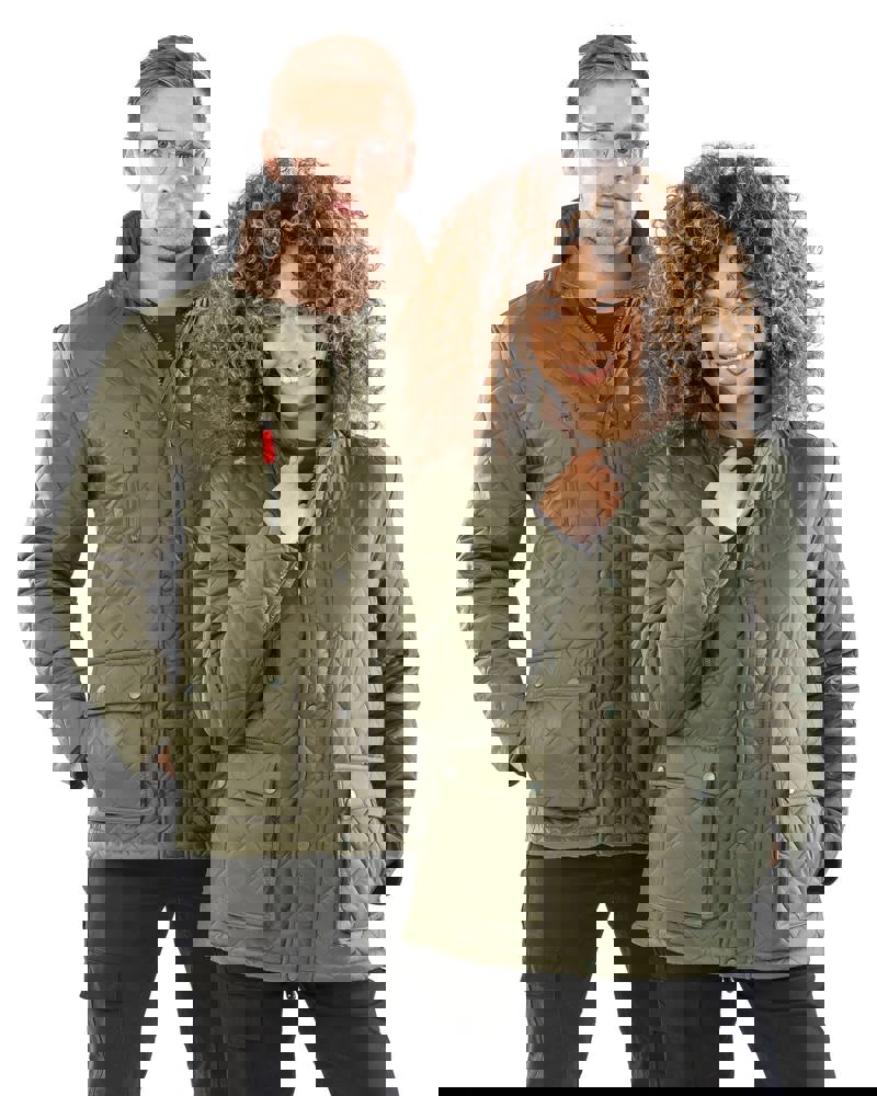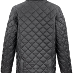 De buitenkant van de jas bestaat uit 100% nylon. Deze laag is voorzien van een polyacryl coating. De binnenkant is gevoerd met 100% polyester fleece. De jas is voorzien van een ruitvormig watteringsmotief. Dit model heeft een zware tweerichting ritssluiting. De kraag is uitgevoerd in velour rib. Er is een stormoverslag met drukknopen aanwezig. De jas heeft twee voorzakken met drukknopen en een zak met ritssluiting.