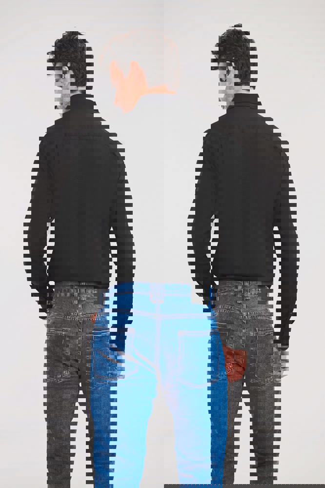 Het overhemd bestaat uit 65% polyester en 35% gekamd katoen popeline. De pasvorm is 'Classic Fit'. Het shirt is voorzien van een klassieke verstevigde kraag. De afgeronde mouwuiteinden zijn verstelbaar en hebben twee knopen. Er is een knoop op de mouw voor extra functionaliteit. De achterkant heeft een inzetstuk met twee plooien. Het overhemd heeft een open borstzakje aan de linkerkant. De knopen zijn in dezelfde kleur als het shirt ('toon op toon'). Een reserveknoop wordt meegeleverd. De onderkant van het shirt is recht.
