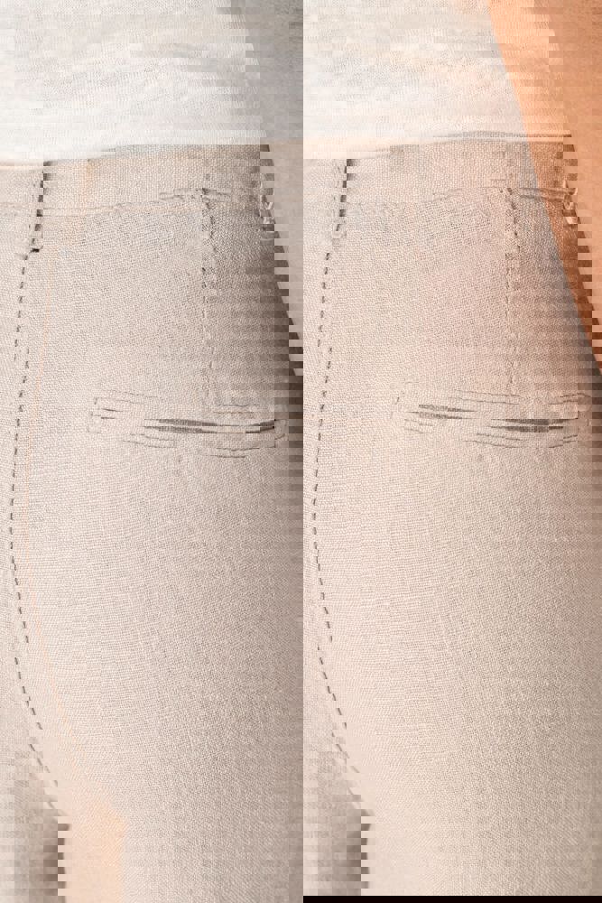 De broek is vervaardigd uit 100% linnen.