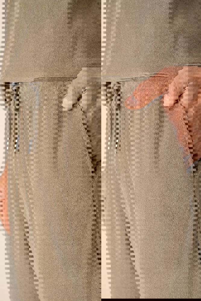 De stof heeft een sponsstructuur en is gemaakt van gekamd katoen. De short is enzymgewassen voor een comfortabele en zachte touch.