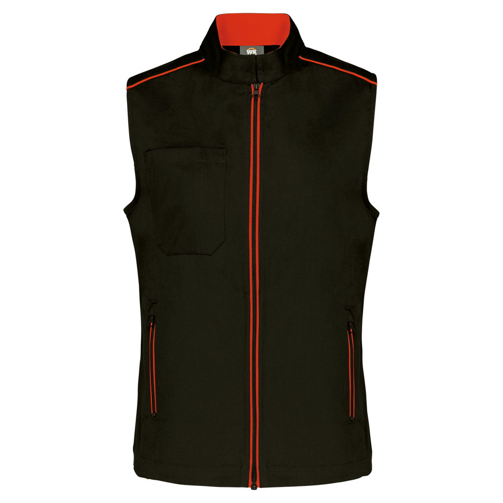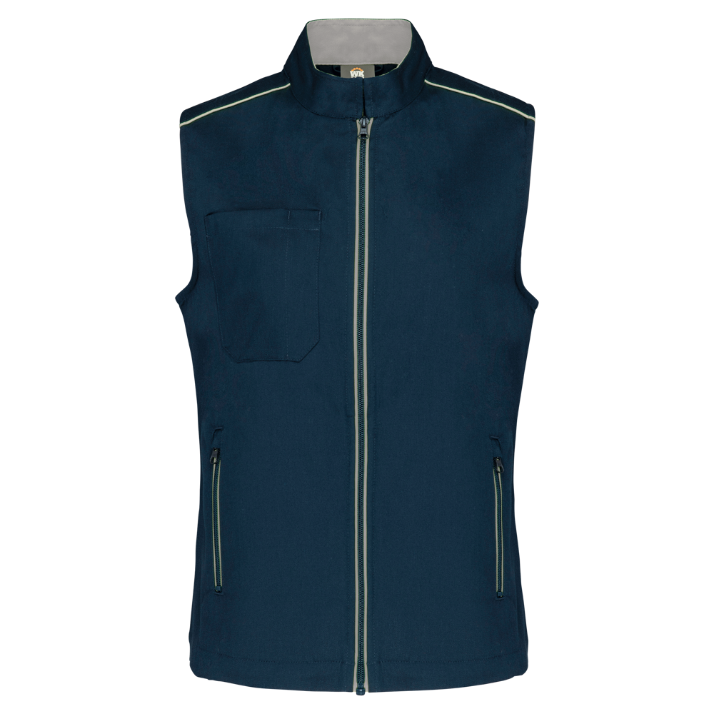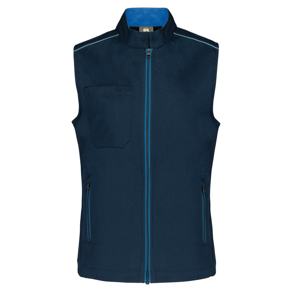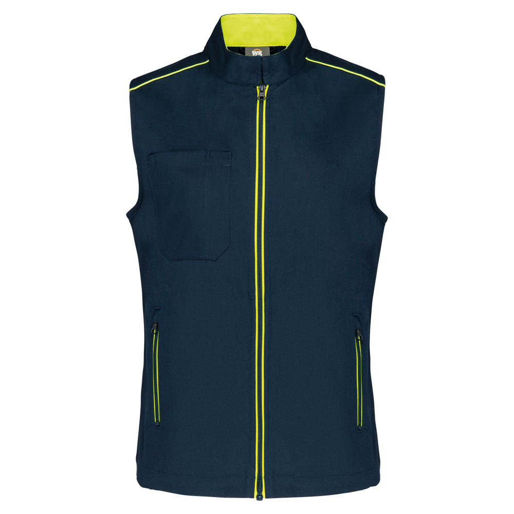 Het damesgilet heeft een praktische ritssluiting aan de voorkant. Er zijn twee ritszakken aan de zijkant voor het veilig opbergen van spullen. De rechter borstzak is open en beschikt over een penhouder. De contrasterende binnenkant van de kraag heeft een ophanglus. De schouders zijn voorzien van een contrasterende bies. Binnenin vind je een naametiket. Er zijn twee ruimtesplitten op de achterkant voor bewegingsvrijheid.