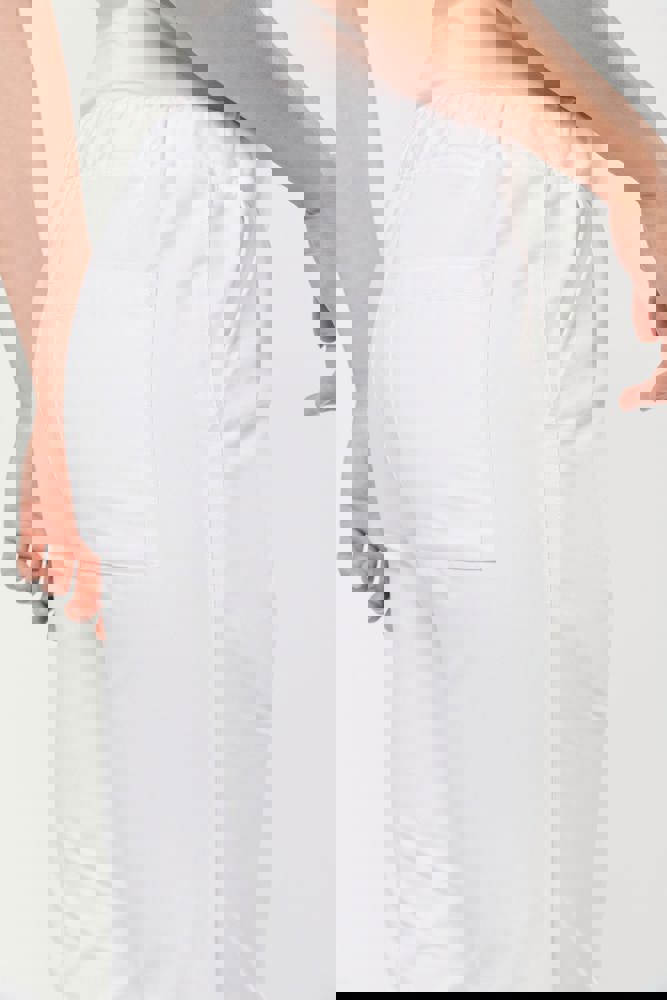 De stof bestaat uit 65% polyester en 35% katoen. Dit is een sterke polykatoenen twill-stof. Je kunt de broek wassen op 60°C voor optimale hygiëne. De broek is uitgerust met twee Italiaanse zijzakken. Er is één opgezette achterzak met extra verstevigingen. De tailleband is elastisch voor een goede pasvorm. De binnenkant van de tailleband bevat aanrijgkoordjes. Het merklabel is een ‘tear-away’ label, dit kan eenvoudig worden verwijderd.