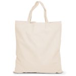 Dit is een stevige katoenen tas met korte handvatten.