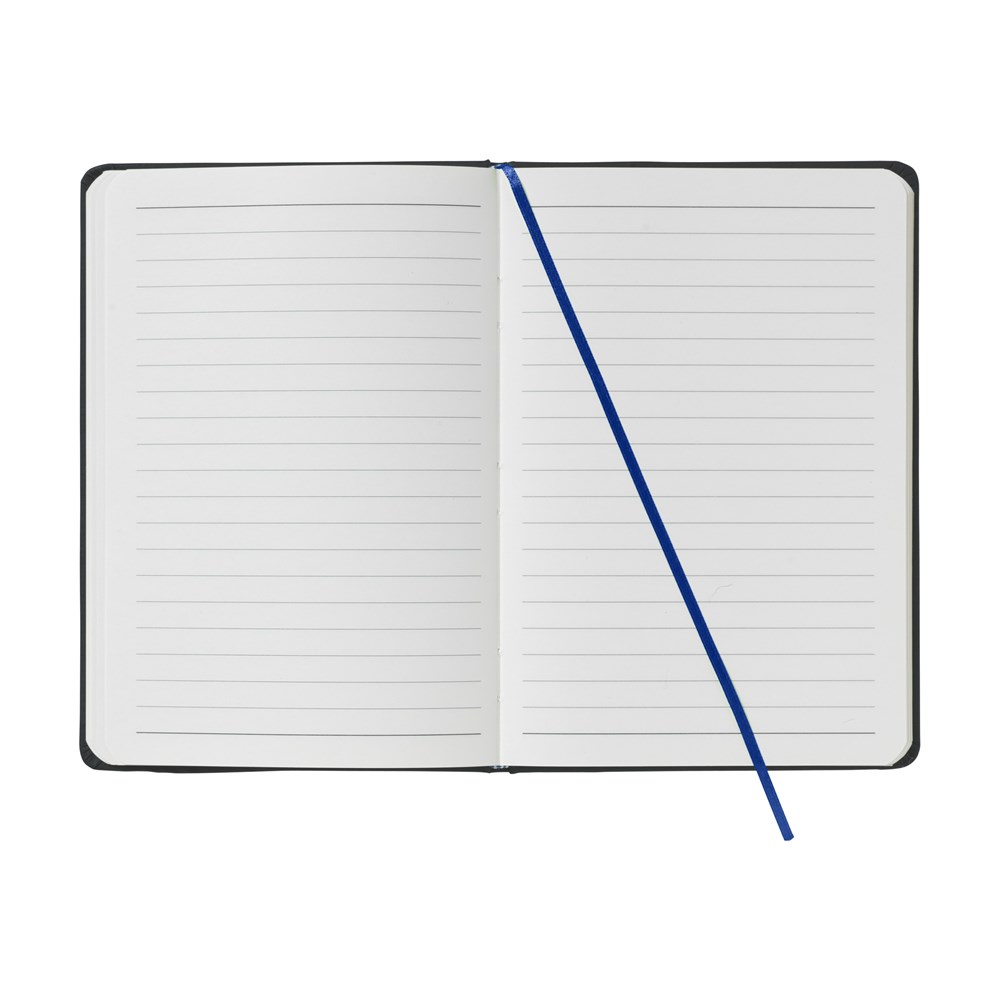 Het notitieboek is uitgerust met een gebonden rug voor extra stevigheid. De cover is gemaakt van duurzaam kunstleder (PU). Het binnenwerk bestaat uit 160 pagina's FSC Mix gecertificeerd papier. Je hebt de keuze uit verschillende kleuren zoals wit, rood, oranje, blauw en limegroen. De elastische sluiting houdt het boek netjes gesloten tijdens transport. Het zijden leeslint helpt je om snel de juiste pagina terug te vinden.