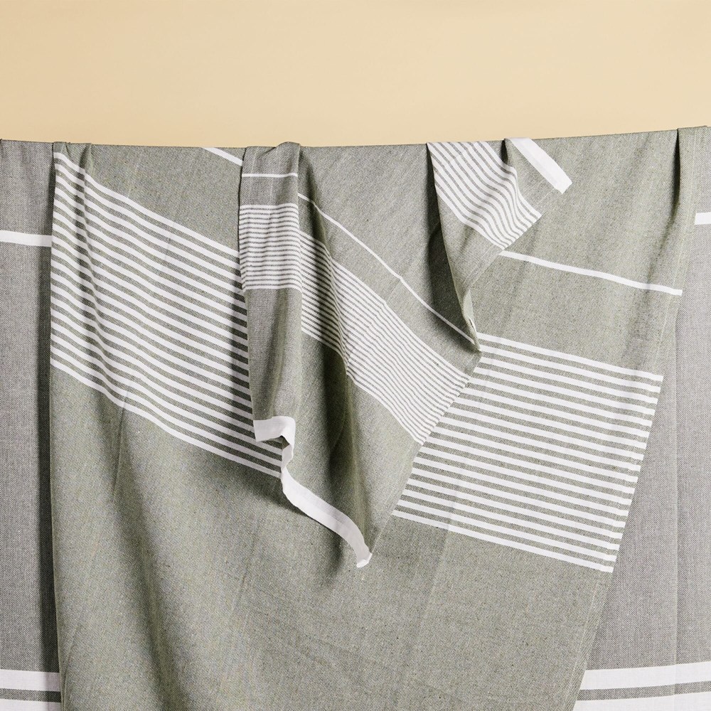 Het product is een set van twee hamamdoeken. De afmeting per doek is 50x70 cm. Het materiaal bestaat uit 70% gerecycled katoen. Het overige materiaal is 30% polyester. De handdoeken zijn licht van gewicht. Ze drogen snel na gebruik. De doeken zijn voorzien van een karakteristiek streepjespatroon. De kleuren zijn variabel. De set is verpakt in een kartonnen sleeve.