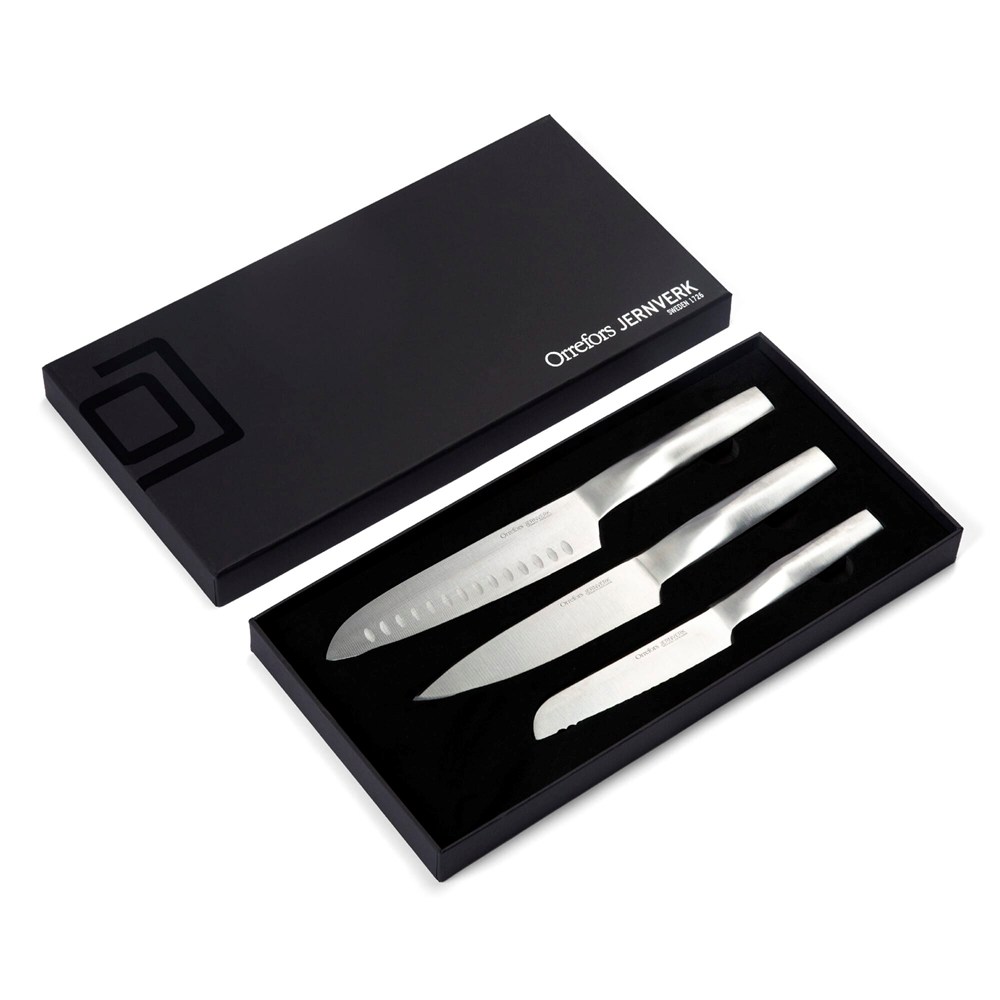 De Orrefors Jernverk Knife Set Steel 3pack is een hoogwaardige messenset.