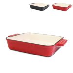 Dit artikel is gemaakt van robuust, geëmailleerd gietijzer. Het gietijzeren materiaal zorgt voor een optimale en gelijkmatige warmteverdeling. De vorm is ovaal en ruim, wat het geschikt maakt voor diverse gerechten. De gietijzeren vorm is verkrijgbaar in de kleuren Zwart en Rood. Gietijzer staat bekend om zijn lange levensduur en duurzaamheid bij intensief gebruik.