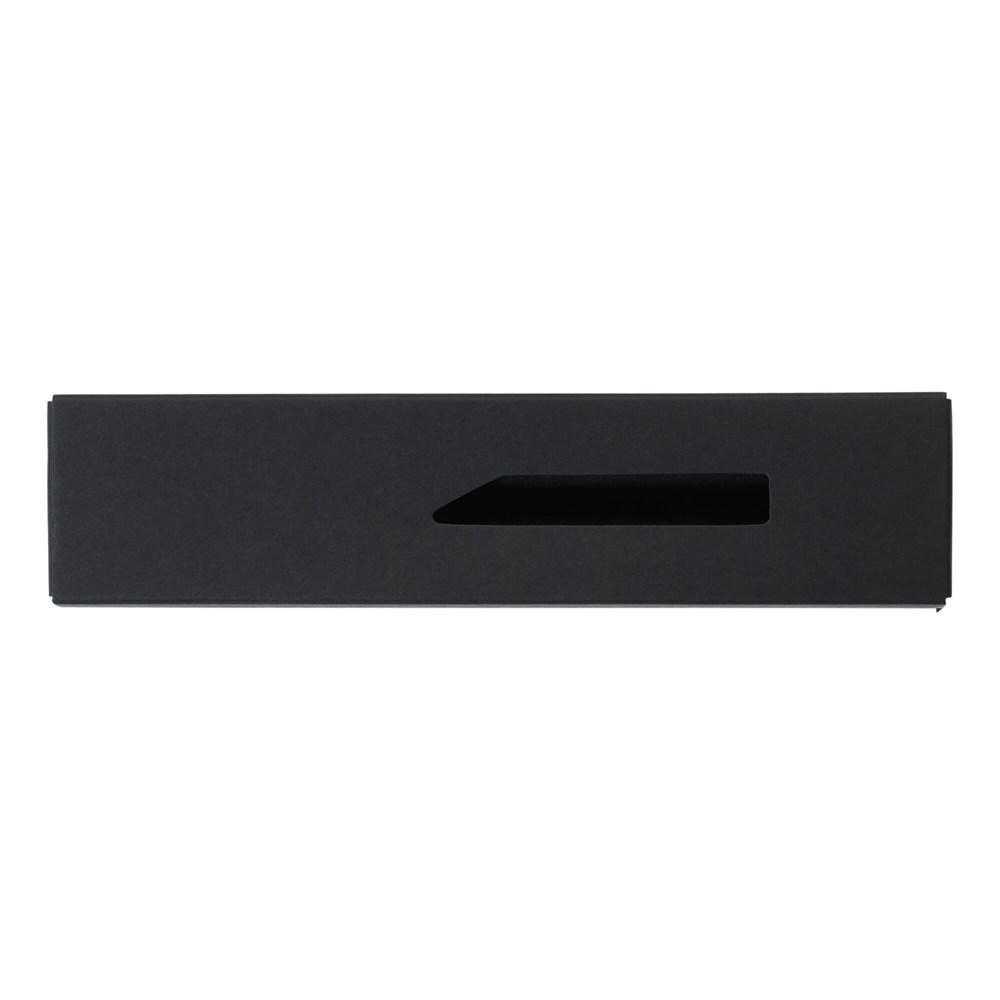 Dit artikel is een rechthoekige kartonnen geschenkverpakking. De verpakking is specifiek ontworpen voor één enkele balpen. De kleur van deze verpakking is consistent zwart. De verpakking is voorzien van een transparant venster. Dit venster zorgt ervoor dat de pen direct zichtbaar is. Het model beschikt over een praktisch schuifdeksel.