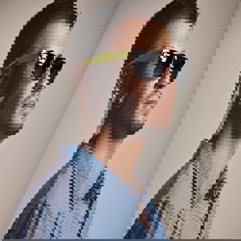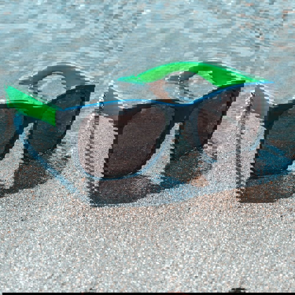 De pootjes van de zonnebril zijn uitgevoerd in de neonkleuren.