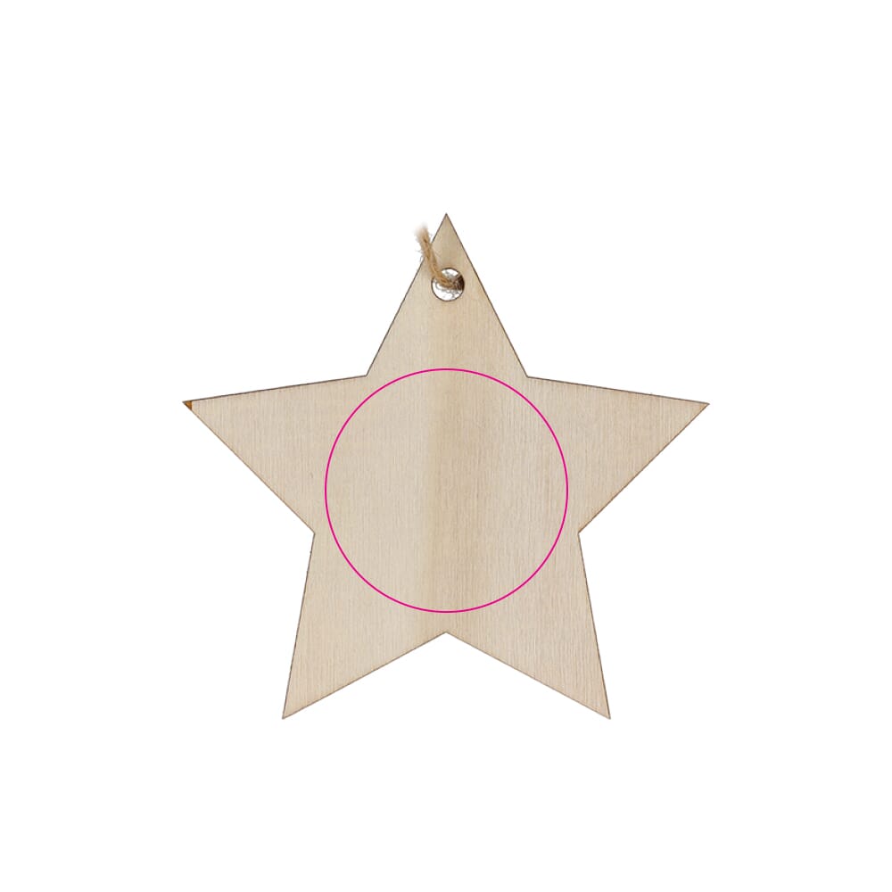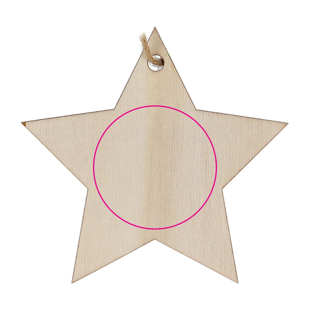 Waar komt de bedrukking op het houten sterornament te staan?