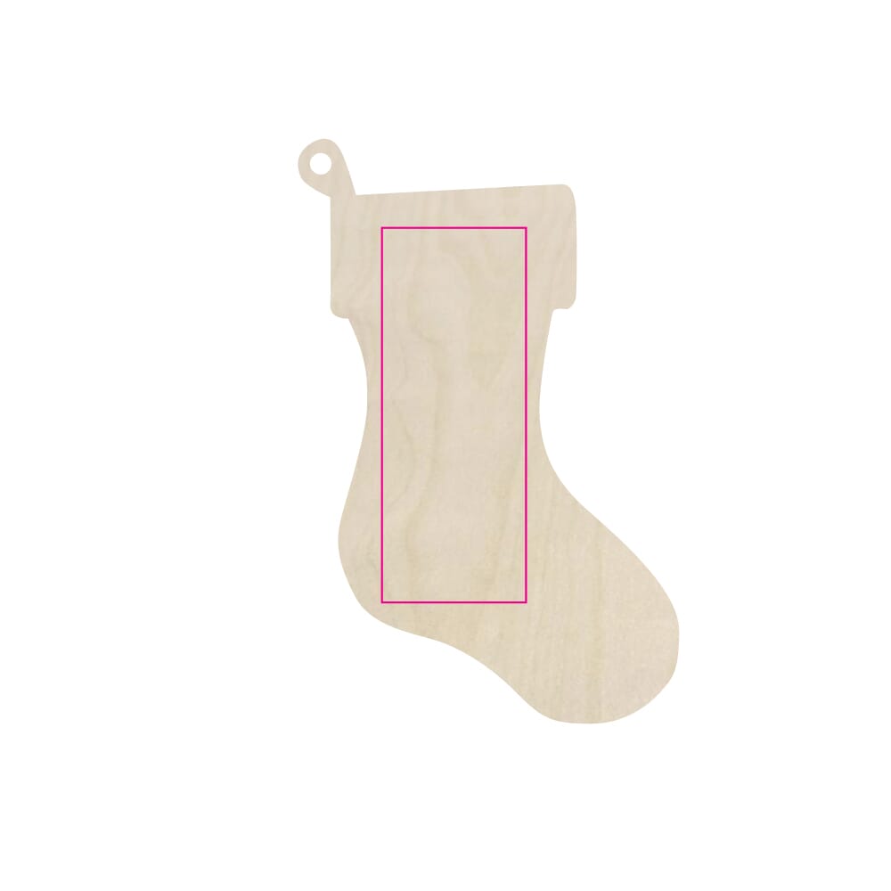 Het producttype is een houten kerstornament kerstsok. Het ornament is gemaakt van hout. De kleur van het kerstornament is natuur. Het product is een variable type. Het houten kerstornament is specifiek ontworpen als promotioneel artikel. De vorm van een kerstsok is klassiek. Het is geschikt voor diverse bedrukkingstechnieken.