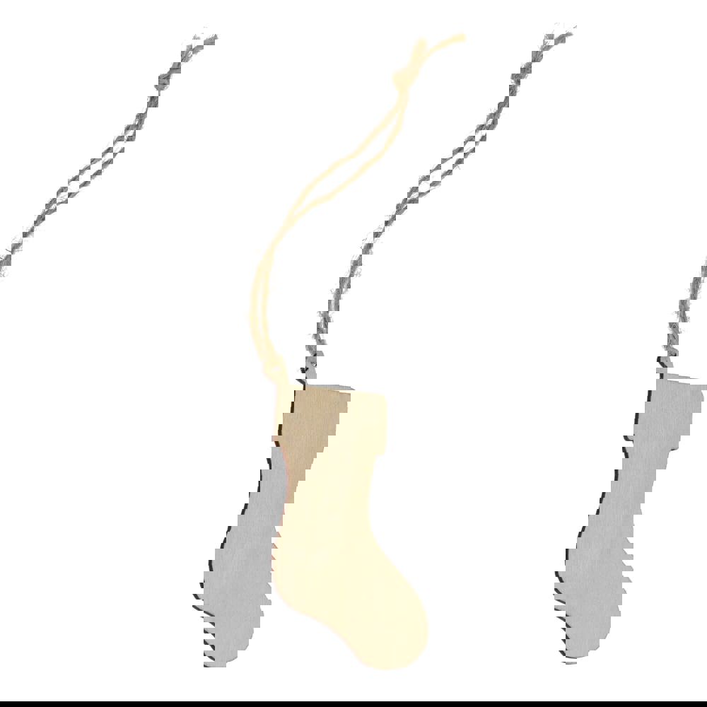 Dit is een houten kerstornament in de vorm van een kerstsok. Het kerstornament is gemaakt van natuurlijk materiaal. Je kunt dit ornament gebruiken als decoratie tijdens de feestdagen. Het houten ornament is ideaal voor in een kerstboom. Je kunt het ook gebruiken voor kransen en andere feestelijke displays. Dit product is een kerstornament en een promotieartikel.
