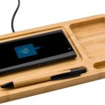 Het is gemaakt van duurzaam bamboe en biedt een 5W draadloze oplaadfunctie.
