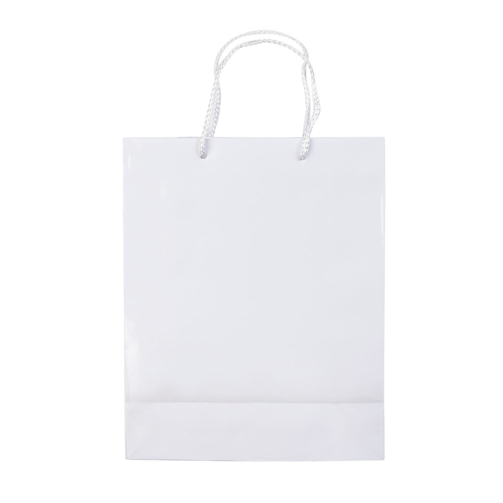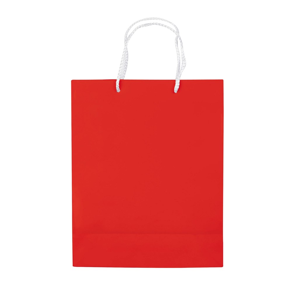 Het product betreft een papieren draagtas van middelgroot formaat. Het gebruikte papier weegt 200 g/m². De tas beschikt over gevlochten touwhengsels. De afwerking is glossy gelamineerd. Deze promotas is stevig en herbruikbaar. De beschikbare kleuren zijn Wit, Zwart, Rood, Oranje, Donkerblauw en Lichtgroen.