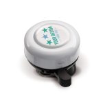 De fietsbel bestaat uit een metalen behuizing voor de klank. De houder is gemaakt van stevig plastic. De kleur van dit specifieke model is wit. De fietsbel heeft een standaard bevestigingsmechanisme voor op het stuur. Dit type fietsbel is een variabel product. De bovenkant bevat een speciale uitsparing voor een doming. Dit zorgt voor een professionele uitstraling van de bedrukte fietsbel. De fietsbel voldoet aan de eisen voor promotieartikelen.