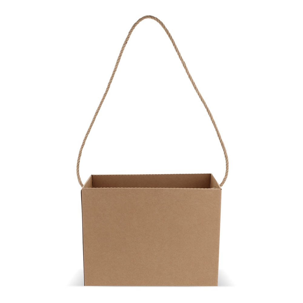 Dit is een liggend model geschenktas. Het product is vervaardigd uit stevig karton. De afmetingen van de Box Bag zijn 32 cm breed, 16 cm diep en 24 cm hoog. De tas is voorzien van stevige hengsels, gemaakt van duurzaam jute. Dit product wordt geproduceerd in Europa. De Box Bag is bruin van kleur.