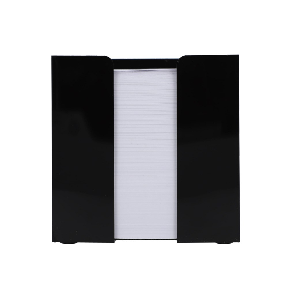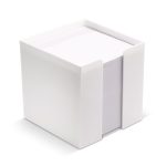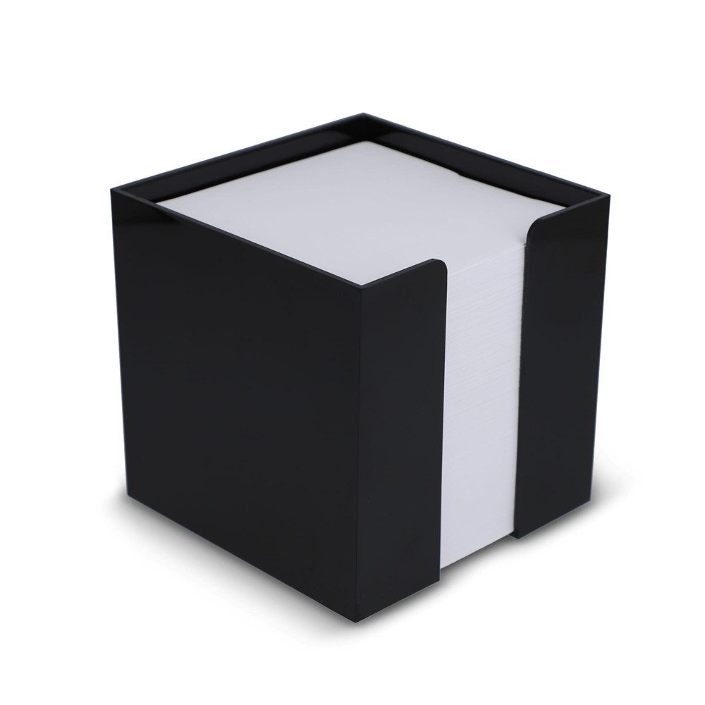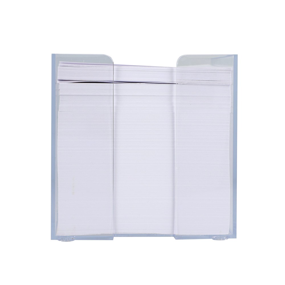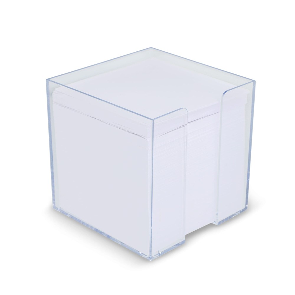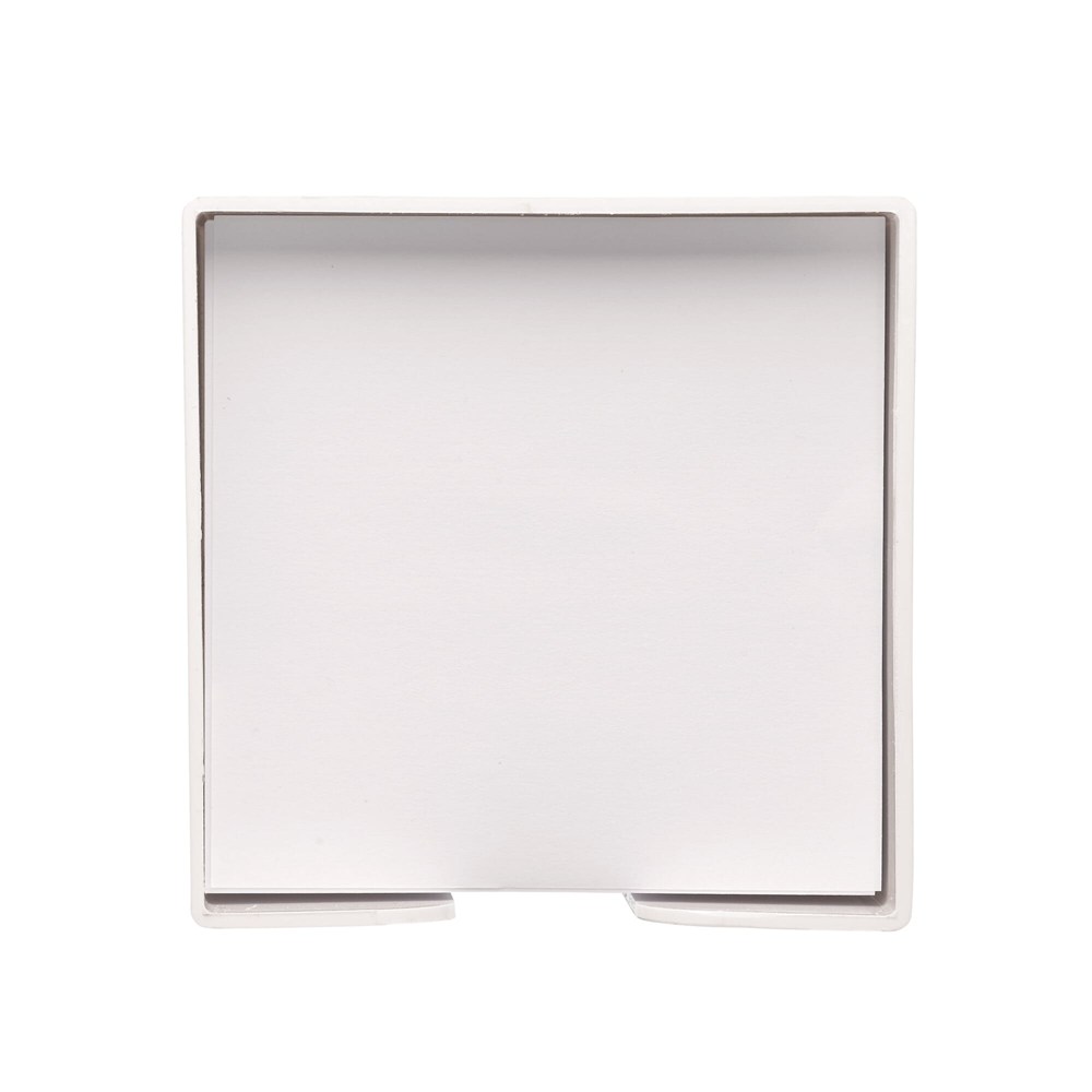 Dit artikel is een Kubushouder met wit papier. Het betreft een complete set, direct klaar voor gebruik. De Kubushouder heeft een afmeting van 10x10x10 cm. Je ontvangt ongeveer 800 losse vellen wit papier. Dit product is ideaal als notitieblok op je bureau.
