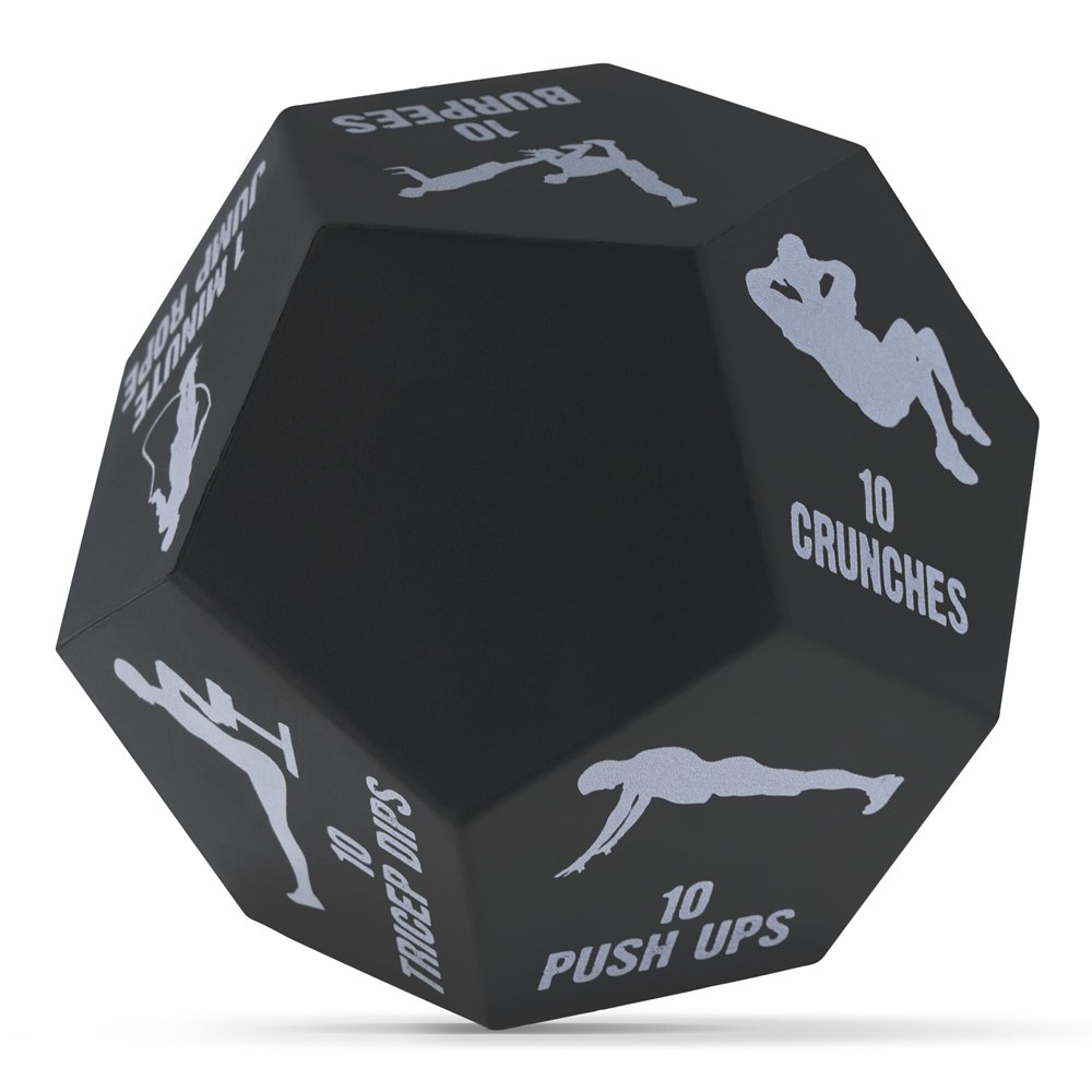 Het product is een fitness dobbelsteen. De kleur van de dobbelsteen is zwart. De afmetingen zijn compact voor eenvoudig meenemen. De dobbelsteen is een variabel product. Dit artikel valt onder Promotionele Artikelen, Sport Artikelen en Sport Accessoires.