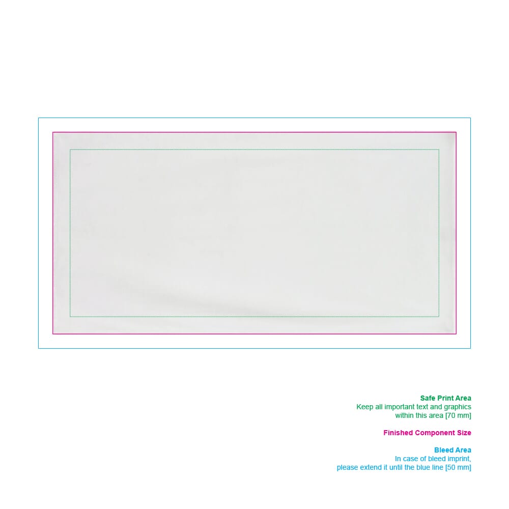 Deze handdoek kan worden voorzien van jouw eigen logo. Personalisatie gebeurt door middel van full-color sublimatie. Sublimatie zorgt voor een levendige en duurzame bedrukking. De polyester velours zijde is het bedrukkingsoppervlak. Je kunt foto’s, complexe designs en kleurverlopen gebruiken. De bedrukking is bestand tegen wassen. Je merk blijft langdurig zichtbaar. Stuur je logo in de juiste vectorbestanden aan. Wij zorgen voor de correcte personalisatie van de handdoek.