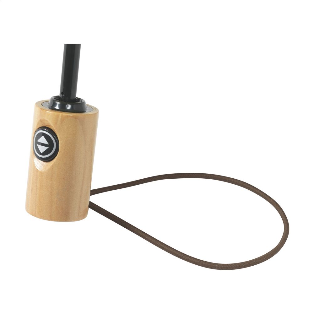 Dit is een opvouwbare paraplu met een automatisch open- en sluitmechanisme. De bespanning bestaat uit duurzaam RPET 190T pongee polyester. Het product is RCS-gecertificeerd. Dit betekent dat 16% van het materiaal gerecycled is. De paraplu heeft een stevig RVS frame en steel. De handgreep is uitgevoerd in hout. Dichtgevouwen heeft de Michigan paraplu een afmeting van Ø 6 x 28,5 cm. Een bijpassende opberghoes wordt meegeleverd.