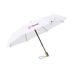 De paraplu beschikt over een stevig roestvrijstalen frame en een RVS steel. Het doek is gemaakt van gerecycled polyester. De houten handgreep is voorzien van een elastische lus. Je sluit de paraplu met een klittenbandsluiting. In opgevouwen toestand zijn de afmetingen 6 centimeter in diameter en 28,5 centimeter in lengte. Je hebt de keuze uit de kleuren wit, zwart, grijs, donkerblauw, olijfgroen en royal blue.