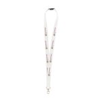 Het materiaal van de band is sterk polyester. De breedte van de lanyard is precies 2 cm. Dit model bevat een solide metalen karabijnhaak. De veiligheidssluiting zorgt voor extra veiligheid in de nek. Je kunt kiezen uit diverse kleuren. Beschikbare kleuren zijn wit, zwart, rood, oranje, blauw, donkerblauw en groen.