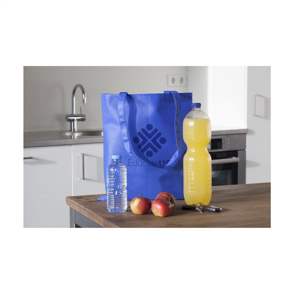 Deze tas functioneert uitstekend als promotioneel artikel. De Shopper is ideaal voor zakelijke klanten, verenigingen en evenementen. Gebruik de draagtas om promotiemateriaal mee te geven op beurzen en congressen. De ruime keuze aan kleuren zorgt ervoor dat de tas goed aansluit bij jouw merkidentiteit.
