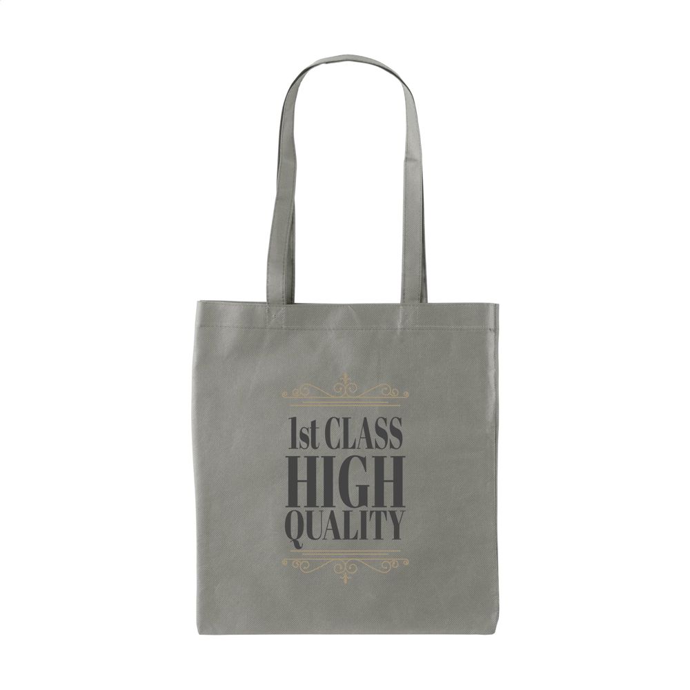 Het nonwoven materiaal van 80 g/m² is een superlichte, maar robuuste kunstvezelstof. De tas heeft lange hengsels voor comfortabel dragen over de schouder. De inhoud van de Shopper is circa 8 liter. Je kunt kiezen uit twaalf beschikbare kleuren, waaronder Wit, Zwart, Rood, Donkerblauw, en Lichtgrijs.