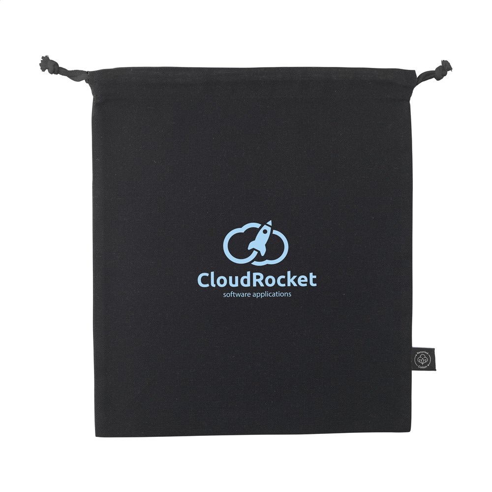 Dit artikel is een Gift Pouch van het formaat M. Het betreft een duurzaam cadeauzakje van 100% gerecycled katoen. Het gerecycled katoen heeft een dichtheid van 150 g/m². Dit zakje is GRS-gecertificeerd (Global Recycled Standard). Je gebruikt deze pouch als milieubewuste verpakking voor geschenken of kleine goederen. De inhoud bedraagt circa 1.5 liter.