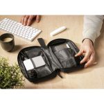 Het producttype is een Tech Organizer. Het etui is gemaakt van 600D RPET polyester. Het totale gerecyclede materiaal is 88%. Het artikel is GRS-gecertificeerd. De organizer heeft een hoofdvak met ritssluiting. De binnenzijde bevat diverse mesh en opbergvakken. Er is een extra ritsvak aan de buitenzijde. De etui is uitgerust met een praktische draaglus. Je kunt kiezen uit de kleuren zwart en blauw.