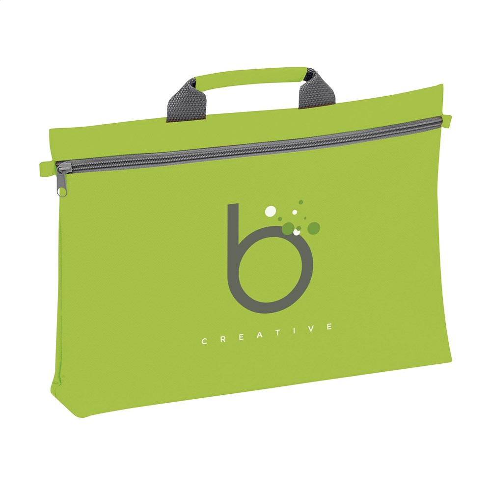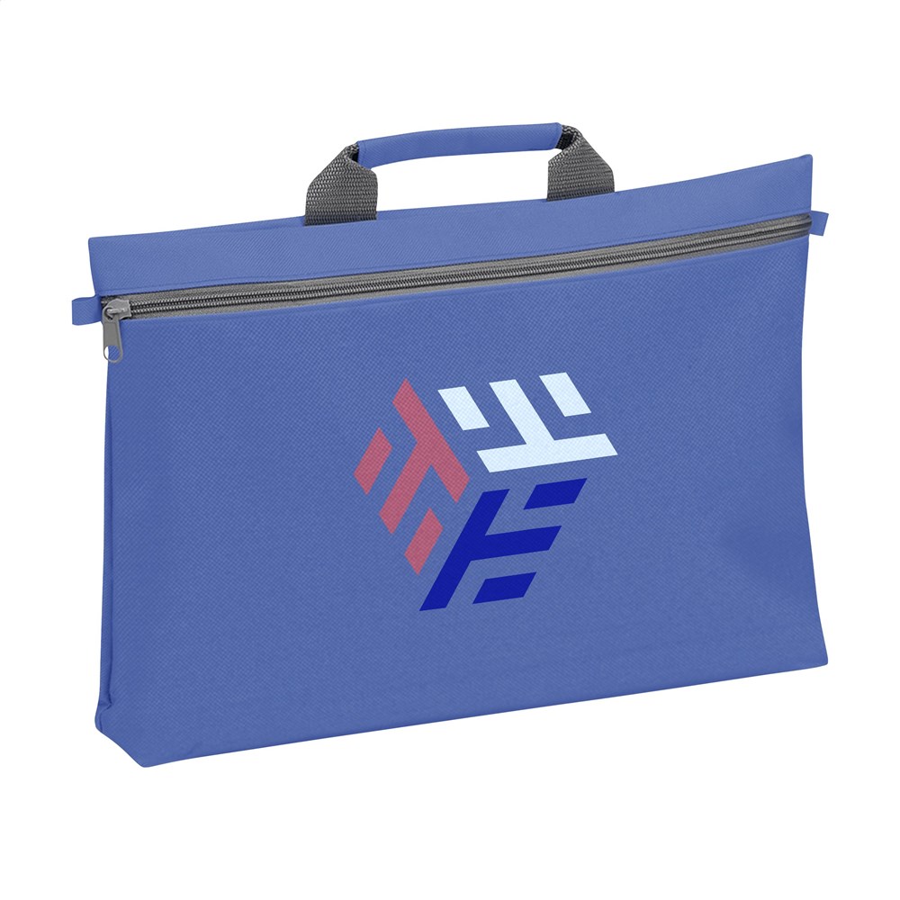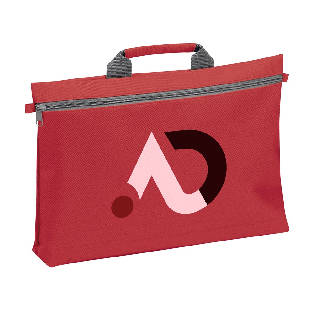Deze handige documententas is jouw ideale zakelijke metgezel voor evenementen of dagelijks gebruik. De ruime opbergtas is voorzien van een sterke rits & stevige handgreep, perfect voor je A4-mappen. Laat de congrestas personaliseren met je logo en maak direct indruk.