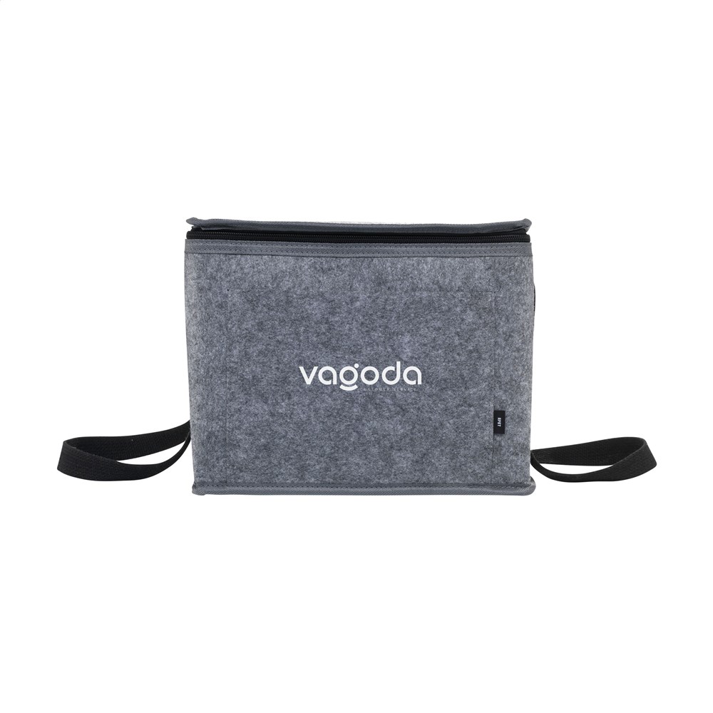 De Keep-it-Cool Felt RPET koeltas is een royale en duurzame promotionele koeltas. Deze grijze tas is vervaardigd uit RPET vilt. RPET vilt is gemaakt van gerecyclede PET-flessen. Je kunt deze koeltas bedrukken met jouw eigen bedrijfslogo. De tas heeft een inhoud van circa 14 liter.