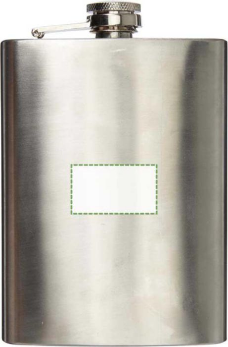 Het logo wordt doorgaans op de voorzijde van de heupfles geplaatst. Neem contact op voor alternatieve positionering.